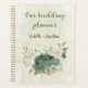Magnifique planificateur romantique avec des fleurs vert sauge et blanches et quelques jolies feuilles.