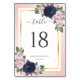 Elégant bleu marine et des numéros de table de mariage floral roux. Éléments correspondants disponibles.