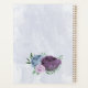 Magnifique organisateur de mariage romantique avec des fleurs bleues poussiéreuses et violettes et quelques feuilles vertes.