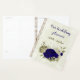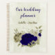 Magnifique organisateur de mariage romantique avec des fleurs bleues royales et beige et quelques feuilles .