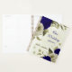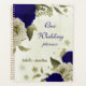 Magnifique organisateur de mariage romantique avec des fleurs bleues royales et beige et quelques feuilles .