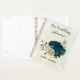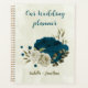 Magnifique planificateur de mariage romantique avec des fleurs bleues sarcelle et beige et quelques feuilles.
