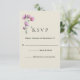 Cette carte RSVP de mariage à fleurs beiges et prune d'inspiration boho présente un joli bouquet de fleurs roses foncées sur le devant de la carte, avec au verso une prune solide. Il y a une couleur beige simple sur le devant de la carte sous le texte et l'image, avec un motif légèrement texturé pour donner au papier un aspect de parchemin vintage. Tous les détails peuvent être facilement personnalisés selon vos besoins.