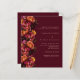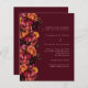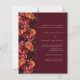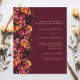 Pour une mariage élégante et romantique. Un fond bordeaux décoré de fleurs bordeaux, roses et pêche. Personnalisez et ajoutez vos noms et détails. Détails RSVP. 1 feuille = 1 invite imprimé bord à bord.