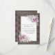 Cartes de réponse de mariage champêtre avec un fond de grange en bois rustique, un arrangement de succulentes dans le coin et un modèle de texte RSVP rustique facile à personnaliser.