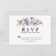 Des roses violets et des fleurs d'hydrangée blanche ornent le dessus de cette jolie carte à fleurs RSVP. Un lave-linge doux et violet recouvre l'arrière. Il fait partie de la collection Violette qui contient de nombreux éléments de coordination que vous pouvez utiliser pour créer un ensemble de papeterie mariage élégant et unique. Vous devriez voir un lien vers cette page. Si vous ne voyez pas la page ou si vous avez besoin d'aide pour un article, veuillez me contacter.