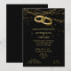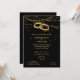 Une belle invitation de mariage avec des lumières scintillantes et un ensemble d'alliances en or pour un couple gay ou lesbien.