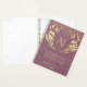 Livre wedding planner violet, glamour, luxe, élégant, avec cadre doré abstrait monogramme - initiales de mariée et mariée.