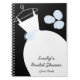 Joli carnet à thème nuptiale dans les tons bleus avec une robe mariage stylisée et des fleurs sur un arrière - plan noir. Un design personnalisable pour personnaliser avec votre propre texte, photos et idées.