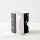 Jolie tasse à thème mariée dans les tons bleus avec une robe mariage stylisée et des fleurs sur un arrière - plan noir. Un design personnalisable pour personnaliser avec votre propre texte, photos et idées. Oeuvre créée par Jess Perry.