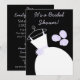 Jolie invitation à la douche nuptiale avec une robe mariage stylisée et des fleurs dans les tons violet et blanc sur un arrière - plan noir, et texte blanc et violet. Un design personnalisable pour personnaliser avec votre propre texte, photos et idées.