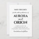 Bague dans les fêtes et vos noces à venir avec ces mariages d'hiver charmants sauvez les dates! Notre design moderne présente une délicate aquarelle en cascade dans des teintes d'hiver douces, encadrant vos noms dans une calligraphie élégante. Une touche de neige capricieuse et un soupçon de magie boisée complètent cette merveilleuse scène hivernale des merveilles, permettant à vos invités de sauver la date pour votre célébration spéciale.
