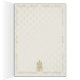Arrière - plan damassé en soie couleur champagne, bordures ornementales et coeurs de pierres précieuses rendent votre faire-part de mariage spécial. La déesse Lakshmi à l'arrière est synonyme de chance, de richesse et de richesse !
