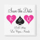 Mariage de Las vegas enregistrer l'aimant de date avec les coeurs rose néon. Conception monographique personnalisée avec initiales de la mariée et du marié plus la date du mariage. Roi monogrammé et reine des coeurs. Jouer à des costumes de carte, coeurs et pique.