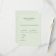 Carte de réponse RSVP de mariage Sage Simple. Options Pour Le Dîner.