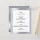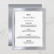 Une mariage élégante et glamour ou une carte de menu du 25e anniversaire de mariage. Modèles pour vos noms, date et le menu mariage. Un cadre faux argenté et blanc et une couleur arrière - plan métallique élégante et glamour. Lettres de couleur noire. Dos : faux arrière - plan métallique à l'aspect argenté.