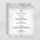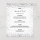 Une carte élégante et séduisante pour les mariages. Personnalisez et ajoutez vos noms, votre date et le menu mariage. Un arrière - plan blanc chic, décoré de parties scintillant faux argentées brille.