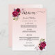 Une carte élégante, moderne et romantique pour les mariages. or rose, arrière - plan couleur rose vif, décoré de fleurs aux couleurs de l'eau en or bordeaux et rose. Personnalisez et ajoutez vos noms, votre date et le menu mariage. Lettres de couleur noire. Le mot Menu est écrit avec un script de style à la main tendance avec des swashes. Retour : arrière - plan Rose de gradient or.