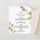 Personnalisez et ajoutez vos noms, votre date et le menu mariage. Arrière - plan blanc, décoré de sprigs d'eucalyptus dorés.