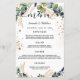 Un menu élégant, moderne et mariage. Un arrière - plan blanc décoré de verdure d'eucalyptus et de feuilles dorés. Taches de fausse parties scintillant dorée. Personnalisez et ajoutez vos noms, votre date et le menu mariage. Lettres de couleur noire. Le mot Menu est écrit avec un script de style à la main tendance avec des swashes. Retour : arrière - plan blanc et faux parties scintillant doré baisse. Les cartes de table et les cartes de place correspondantes sont disponibles dans notre magasin.
