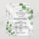 Personnalisez et ajoutez vos noms, votre date et le menu mariage. Marbre imprimé en pierre comme arrière - plan, décoré de végétation d'eucalyptus, sprigs.