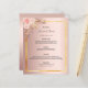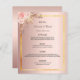 Une élégante carte de menu mariage de style bohème. Personnalisez et ajoutez vos noms, votre date et le menu mariage. Un cadre en faux or et un arrière - plan rose en faux or métallique. Décoré de fleurs roses rousses et d'herbe de pampas. Retour : arrière - plan rose couleur or.