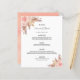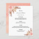 Une élégante carte de menu mariage de style bohème. Personnalisez et ajoutez vos noms, votre date et le menu mariage. Un arrière - plan blanc. Décoré de fleurs roses rousses et d'herbe de pampas. Retour : arrière - plan rose couleur or.