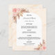 Une élégante carte de menu mariage de style bohème. Personnalisez et ajoutez vos noms, votre date et le menu mariage. Marbre doré imprimé comme arrière - plan. Décoré de fleurs roses rousses et d'herbe de pampas.