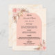 Une élégante carte de menu mariage de style bohème. Personnalisez et ajoutez vos noms, votre date et le menu mariage. Marbre doré imprimé comme arrière - plan. Décoré de fleurs roses rousses et d'herbe de pampas.