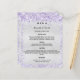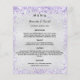Une carte élégante et séduisante pour les mariages. Personnalisez et ajoutez vos noms, votre date et le menu mariage. Arrière - plan à l'aspect argent faux, décoré de violet, lavande confetti.