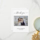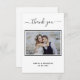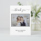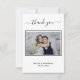 Une Carte de remerciements élégante et moderne, personnalisée avec votre propre photo. Ajoutez Votre photo, la date du mariage, vos noms et la note de remerciement. Une carte en noir et blanc tendance. Le texte : Merci sur l'avant et vos noms sur l'arrière sont écrits avec une écriture manuscrite stylisée.
