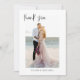 Notre Merci minimaliste Mariage Photo Simple est l'exemple de l'élégance et de la gratitude. Avec un design épuré et sobre et de l'espace pour votre photo de mariage préférée, c'est la façon parfaite d'express vos remerciements à ceux qui vous sont chers. Personnalisez avec votre message et envoyez un signe de reconnaissance sincère qui sera chéri pour les années à venir. Que vous remerciiez les invités pour leur présence, leurs cadeaux ou leur soutien, cette carte offre votre gratitude dans un style minimaliste et intemporel. Chaque carte est conçue avec une attention particulière aux détails, assurant une présentation sophistiquée qui reflète la beauté de votre journée spéciale. Dites merci avec simplicité et style grâce à notre carte minimaliste Merci Mariage Photo Simple, un souvenir parfait de votre amour et de votre appréciation.
