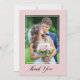 Dites merci à vos invités mariages avec cet élégant carte de remerciements de deux photos. Le design comprend une photo verticale et un élégant script "Merci" sur un arrière - plan rose poussiéreux. Le dos offre une deuxième photo horizontale et texte personnalisé pour votre message de remerciement personnel.