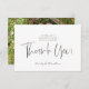Un design de texte minimaliste avec un script stylé pour le Merci de typographie en marron foncé et le reste du texte que vous pouvez facilement personnaliser. Sur le dos échange dans votre photo préférée de votre journée spéciale comme un souvenir pour vos invités.