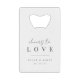Levez un toast avec l'ouvre-bouteille personnalisée pour mariage de Redwood & Vine Design Co., un gardien moderne qui combine style et fonction. Le design élégant en noir et blanc présente des lettres "cheers to love" sur le devant avec vos noms et date mariage. Idéal pour les mariages, les réceptions, les anniversaires et les célébrations fiançailles, cet ouvre-portes durable est une faveur pratique que vos invités utiliseront et chériront bien après l'événement. Un mélange parfait de design minimaliste et de personnalisation significative.