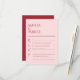 Ajoutez à votre gamme de papeterie mariage notre carte RSVP minimaliste, conçue pour correspondre à notre jeu d'invitation minimaliste de faire-part de mariage rouges pourpre. Cette carte est munie d'un arrière - plan léger, ce qui permet à vos invités d'écrire facilement leurs réponses. Le texte est dans une police orange vif qui correspond à l'arrière - plan de l'invitation dans ce jeu, assurant un style continu. La typographie soigneusement conçue vient compléter l'esthétique globale, alliant simplicité et fonctionnalité. Parfait pour les couples qui aiment le design moderne et cohésif, cette carte RSVP est l'ajout idéal à vos préparations mariages.