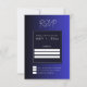 Les cartes RSVP de mariage bleu minimal sont un choix populaire pour les couples qui préfèrent un design propre et élégant pour leur papeterie mariage. La couleur principale utilisée dans ces cartes RSVP est le bleu. La simplicité des couleurs apporte une touche minimaliste. Bien que le design soit minimal, il y a encore de la place pour le toucher personnel. Les couples peuvent ajouter leurs noms, monogrammes et autres petits éléments de design qui reflètent leur style et leur thème mariage. Les cartes RSVP sont souvent envoyées avec une enveloppe bleue minimaliste correspondante. L'enveloppe peut avoir un design subtil ou un petit détail qui complète l'esthétique globale de la carte RSVP. Lorsque vous choisissez vos cartes RSVP de mariage bleu minimal, il est essentiel de tenir compte de votre thème mariage et de la conception globale de la papeterie pour assurer la cohérence. N'oubliez pas que les cartes RSVP font partie intégrante de votre suite de faire-part de mariage, alors assurez-vous qu'elles correspondent au style et au ton que vous souhaitez définir pour votre journée spéciale.