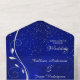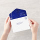 Ce joli faire-part de mariage de toute saison avec la carte RSVP déchirée dans les tons d'argent et de bleu royal donnera un sens de l'élégance à votre mariage! L'intérieur est agrémenté d'un gracieux tourbillon argenté orné de quelques feuilles, et d'une subtile couche de confettis argentés qui ajoute un peu de brillance. Votre texte mariage est également en argent à droite de l'image tourbillonnante de la feuille. Tout est placé sur un arrière - plan bleu profond et époustouflant qui semble presque luisant. La partie inférieure de déchirure RSVP a l'image tourbillonnante continue, mais est blanche pour rendre facile à votre répondant de marquer. Si vous n'avez pas besoin d'un champ de texte, videz-le, et si vous avez besoin d'aide pour organiser un autre texte, veuillez nous contacter. Nous sommes toujours heureux d'aider. Si vous avez une réception sous forme de buffet, nous pouvons travailler avec vous pour reconcevoir la partie RSVP, alors n'hésitez pas à demander ! Un bonus supplémentaire et une touche personnelle est votre propre photo sur le rabat arrière.