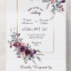 Ce joli faire-part de mariage avec la carte RSVP détachée combine d'élégantes images aquarelles de bouquets de fleurs violet, rose, gris et vert tendre avec une typographie moderne. Le cadre doré intérieur est embelli en haut et en bas avec les images florales. Le rabat arrière montre votre propre photo. Votre texte personnalisé est une combinaison d'écriture manuscrite et de polices traditionnelles dans le violet foncé et le gris bleu assortis, et il ya beaucoup de champs pour vos informations. Si vous n'avez pas besoin d'un champ de texte, videz-le. Nous sommes toujours heureux d'aider, alors n'hésitez pas à nous envoyer un message si vous avez besoin d'aide. Si vous avez une réception sous forme de buffet, nous pouvons travailler avec vous pour reconcevoir la partie RSVP, alors n'hésitez pas à demander !