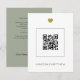 Ce design minimaliste est parfait pour un mariage moderne. Blanc sur le devant avec un dos de couleur sauge. Avec un code QR sur le devant qui est lié à l'URL de votre site web de mariage. Vous pouvez obtenir un code QR facilement en ligne. Une fois que vous avez votre code unique, vous le téléchargerez ici, puis vous ajouterez vos prénoms.
