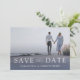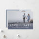 Annoncez votre jour spécial avec cette carte de save the date moderne et sophistiquée, où votre photo préférée occupe le devant de la scène sous un dégradé de bleu poussiéreux doux, créant une atmosphère romantique et contemporaine. Au verso, ajoutez une deuxième photo ainsi que des détails de mariage entièrement personnalisables pour créer un souvenir vraiment personnel. Parfait pour les thèmes de mariage minimalistes, élégants et romantiques, ce design donne le ton stylé de votre célébration.