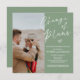 Design photo rustique moderne avec fond vert sage qui informe rapidement et facilement les clients et les proches de votre changement de plan mariage, et reprogrammer la date. Le modèle est entièrement modifiable que vous pouvez remplacer par votre photo personnelle, les noms, les nouvelles dates, et d'autres détails importants.