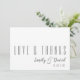 Police moderne "Amour & Merci" Carte de remerciements Mariage | Élégant papier à lettres Mariage personnalisé. Express votre gratitude dans le style avec cette police moderne "Love & Thanks" carte de remerciements mariage. Parfait pour les mariages contemporains, cette carte élégante et personnalisable vous permet d'ajouter un message personnel pour témoigner de votre reconnaissance à vos invités. Idéal pour des thèmes mariages chics, minimalistes et modernes.