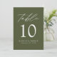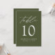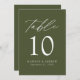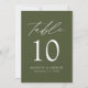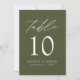 Mariage moderne élégant vert olive Numéro de table