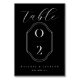 Un panneau de numéro de table de mariage intemporel, classique et élégant avec une esthétique minimale moderne en noir et blanc classique. Simple et élégante crête de numéro de table avec une typographie simple arrangée dans un agencement moderne. **Toutes les couleurs peuvent être changées selon votre préférence de couleur mariage. Consultez nos autres articles mariages correspondants pour cette collection.
