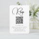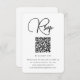 Cette carte de réponse mariage moderne dispose d'un emplacement pour votre code QR afin que les invités puissent facilement s'afficher sur votre site mariage. L'avant présente un design noir et blanc simple et épuré avec typographie de script en lettrage tendance. Le dossier minimal est blanc solide.