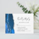 Le bord gauche de cette élégante carte d'enceinte RSVP de mariage moderne comporte une bordure d'aquarelle bleu royal ornée d'une parties scintillant en faux argent. Le titre "Kindly Reply" apparaît dans un script d'écriture manuscrite, avec le texte personnalisable ci-dessous en caractères gris fusain sur un arrière - plan blanc. L'envers est assorti d'un design d'agate bleu et argent royal.