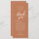 Partagez l'amour et montrez votre appréciation à vos invités, quand ils s'assoient à leur siège et lisent cette carte de remerciement personnalisée et charmante. C'est une façon merveilleuse de commencer votre fête spéciale ! Cette carte vous donnera le ton pour un événement inoubliable. La carte de remerciements est décorée dans un style moderne, dans un style marron cuivré intemporel en terre cuite, ajoutant une touche d'élégance intemporelle à votre célébration. Conçu par TeeshaDerrick
