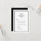 Chic et minimaliste français, d'inspiration parisienne, carte RSVP mariage noir et blanc avec options de repas. Customisez avec vos informations de mariage dans une police sans serif chic et minimale. Conçu pour correspondre à notre collection de Mariages noirs et blancs minimaux chic.