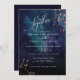 FAIRE-PART DE MARIAGE | Jaspé peint à la main dans des teintes de bleu saphir profond et teals- accentué avec des nuggets d'or rose aux coins. Le texte manuscrit calligraphie sur la diagonale "ensemble" en haut permet un chaleureux attrait personnel - facile à personnaliser le modèle.